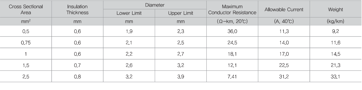 AC 450/750V 이하의 일반 공작물이나 전기기기의 옥내 배선용으로 사용.