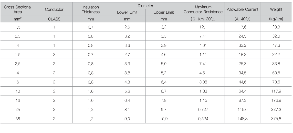 AC 450/750V 이하의 일반 공작물이나 전기기기의 옥내 배선용으로 사용 Used for indoor wiring of general workpieces or electric devices under AC 450/750V